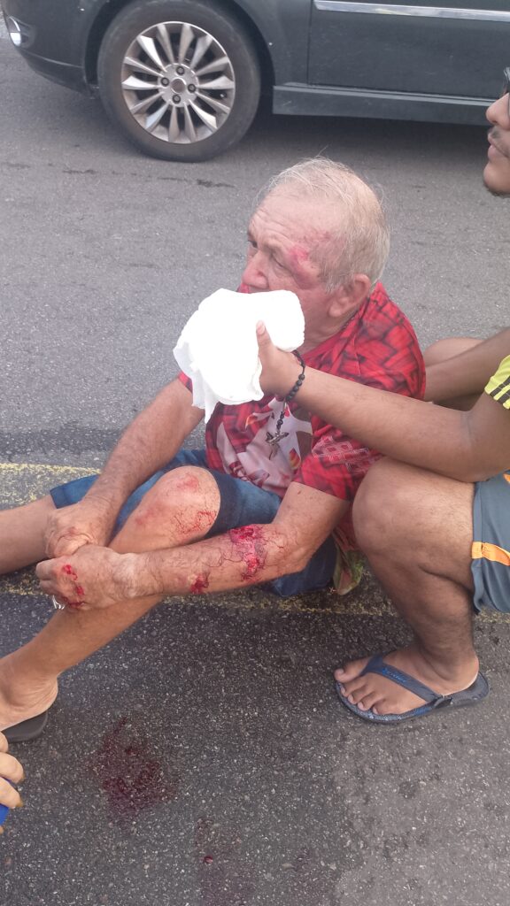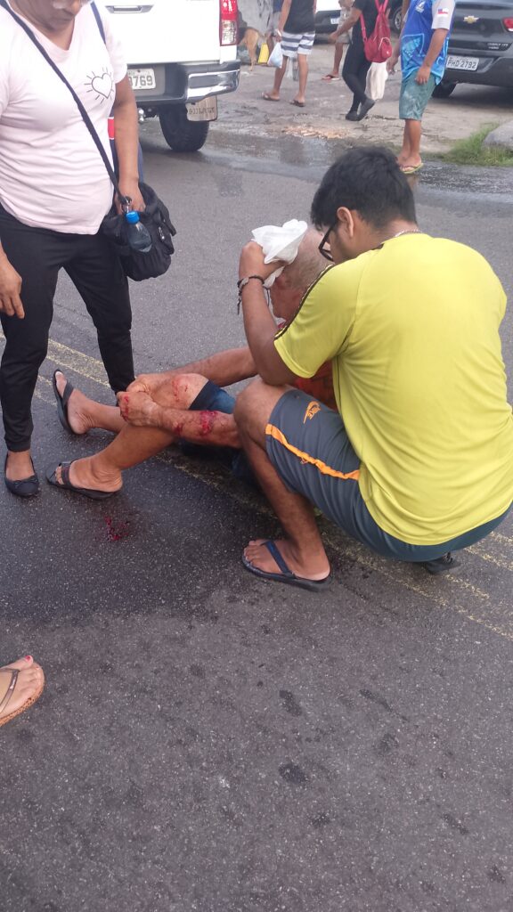 Um idoso identificado como Hilário Souza, de 68 anos, teve graves ferimentos no braço esquerdo e outras escoriações após ser atropelado por uma motocicleta. O caso aconteceu na avenida Nhamundá, no bairro Praça 14 de Janeiro.